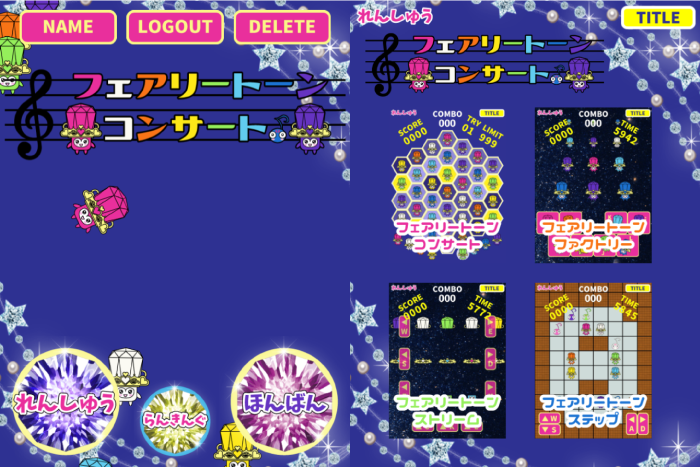 フェアリートーンコンサートは、フェアリートーンのミニゲーム集です。4つのミニゲームが遊べます。