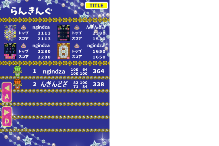 このゲームには、ランキング機能が搭載されています。すべてのゲームをこなした後、ランキングに登録されます。また、その後は好きなゲームを選んで遊べるようになります。